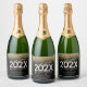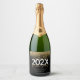 Black and gold modern script glitter graduation sparkling wine label