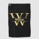 Black and Gold Monogram | Elegant Initial Script Golf Towel