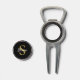 This classic simple black and gold monogram golf divot tool is easily personalized for any golf player with name and initial.