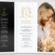 Hand-drawn crown and heart monogram 6pp brochure wedding program, with your own two full length photos in black, gold color and white. Heart crown crest design entwined with berries and leaves circling your own monogram initials. Personalize with your own ceremony details, wedding party, two photos and words of thanks. Other colors and matching wedding items are available. © Original hand drawing and design by Sarah Trett for www.mylittleedenweddings.com on Zazzle.
