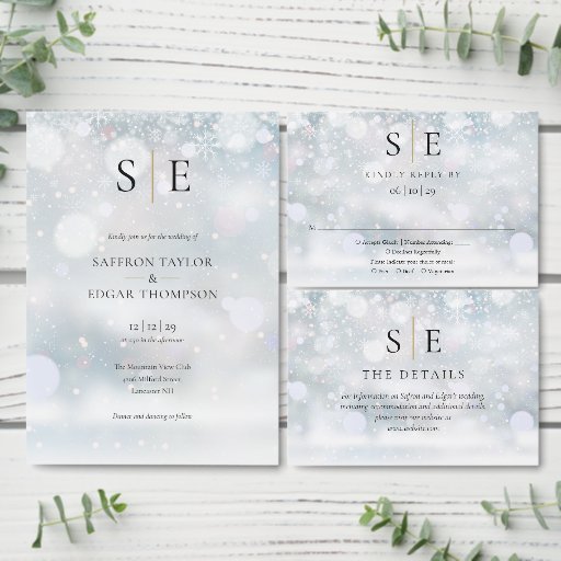 Simple Winter Snowflakes Monogram Wedding SuiteDesigned by Thisisnotme Designs