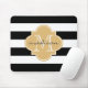 Black and Gold Nautical Stripes Custom Monogram Mouse Pad