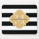 Add some style to your work or home office with this chic black and white stripes with a custom personalized gold quatrefoil monogram mouse pad. To change the fonts or font colors, click the "Customize It" button below the product image.