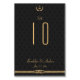 Nautical wedding table numbers with golden anchor and customizable text printed on black background with anchor pattern