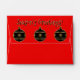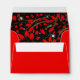 Beautiful custom-made vibrant bright red envelope features your return address adorned w/ black & gold Christmas ornaments. on front & back flap, a personalized caption on back (defaults to "Season's Greetings") and lined w/a gorgeous matching red poinsettia & white stars pattern on black.