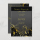Smaller card which can be tucked inside the envelope along with the invitation. Black with gold flourishes. Customizable with text on both sides
