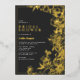 Elegant bridal shower invitations with floral detailing in real metallic foil. Gold on a contrasting black background.