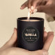 Communicate your business's brand with a luxurious look that still makes a big statement. Include your company name, the candle scent, and any other information you choose about your candle or your business on a black background in distress font with a black and gold color.