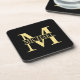 Black and Gold Personalized Monogram and Name Beverage Coaster