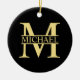 Black and Gold Personalized Monogram and Name Ceramic Ornament