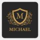 Black and Gold Personalized Stylish Monogram Name Square Sticker