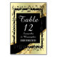 Traditional chic elegant modern sleek masculine black and gold personalized table number with musical notes surround, on black background and swirly ribbon , personalize with your text to the templates for your special occasions or celebrations. Visit the PERSONALIZED _WEDDINGS STORE for matching products. PLEASE NOTE THE golden color is not metallic.