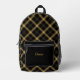 Black and Gold Plaid Printed Backpack