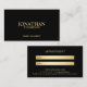 A black and gold modern professional design featuring business information in professional font style on front side of the design
