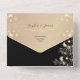 This black and gold all-in-one wedding invitation is designed for couples who want a refined, elegant look paired with modern wedding functionality. Featuring delicate gold floral details on a rich black background, this invitation offers a timeless and sophisticated presentation without the use of photos.