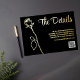 Roses have long been associated with love and romance, and this elegant invitation beautifully showcases a delicate rose bud in captivating black and gold hues.