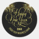 Black and Gold script Happy New Year sticker with your editable personalized business name, personal name, or message. Perfect for a New Year's party or a New Year's gift from your business. Firework illustrations add a festive touch to the new year stickers.