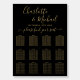 Black and gold elegant signature wedding seating chart featuring signature style names, this chic, stylish seating chart can be personalized with your celebration details. Designed by Thisisnotme©