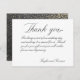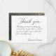 A vintage calligraphy script highlights this wedding Thank You card. The back of the card features a soft black watercolor background with gold splash dotting.