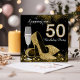 Black and Gold Stepping Into 50 Birthday Party Invitation