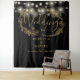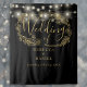 This stylish string lights floral wedding photo booth backdrop can be personalized with your names and special date in gold on a black background. Designed by Thisisnotme©