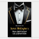 Celebrate in sophisticated style with a Black and Gold Tuxedo Birthday Event Sign. Featuring a luxurious black backdrop adorned with shimmering gold accents and a dashing tuxedo motif, this sign sets the tone for an elegant celebration. Perfect for welcoming guests, directing them to the festivities, or showcasing the birthday honoree, this striking design adds a touch of glamour and refinement to any milestone event. Customize it for a bold, memorable statement at your special occasion!