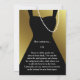 Black and gold tuxedo invitations for your formal dinner party or special formal event! Elegant and minimal in design style, this custom tux invitation will bring a classy touch... The illustration on the front depicts a man's formal tux suit, and the bottom accent bar can be easily deleted if you prefer more black space for your personalized text. You can also remove the gold graphics in the template to be able to change the bow tie color with the background selector. On the back of these cards are a "little black dress" for the ladies and a string of pearls.