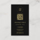 Upload Your Logo Modern Elegant Gold Text Template QR Code Simple Design Professional Black & Gold Matte Paper Standard Size Vertical Business Cards. Perfect for Employees, Staff, Real Estate Agents, Accountants, Realtors, Brokers, Attorneys, Doctors, Corporate Professionals, Stylists, Architects, Engineers, Directors, Managers, Consultants, Designers, Teachers, Musicians, all professions.