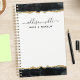 Elevate your professional style with this black and gold watercolor business personalized planner. Perfect for women in the beauty industry, this planner combines elegant design with practical functionality. The luxurious gold accents and chic watercolor artwork add a touch of sophistication to your daily organization. Personalize it with your name for a unique and stylish planner that stands out in your workplace.