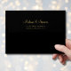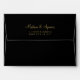 A customizable black and gold 5X7 envelope with a white lining inside. This personalized elegant envelope is a classy way to send invitations.