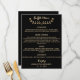 Black And Gold Wedding Buffet Menu Card features gold leaf wreath and buffet menu template in black background. A perfect design for modern and simple wedding or for rehearsal dinner party.Please click on the personalize button to customize it with your text or name.Kindly visit my store " loveyouart" for other or similar designs .