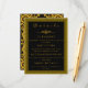 Black and gold with a patterned border. decorative elements and a monogram. Add details like ceremony or reception location, accommodation information, and more to fit your needs.