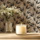 Embrace the serene beauty of nature with this sophisticated botanical wallpaper. Elegant leaves in shades of black and gray create a calming and stylish atmosphere. This peel and stick wallpaper is easy to apply and remove, making it perfect for adding a touch of understated elegance to any room.