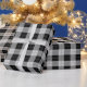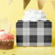 This roll of wrapping paper features an almost gingham style black and gray checkered picnic plaid.