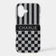 Black and Gray Checkered Striped Personalized Case-Mate iPhone Case