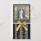 Black and charcoal gray stripes with a subtle damask pattern adorns the back of this elegant card. A gold ribbon and bow complete the look! Upload your own photo and customize the text on this photo invitation card.