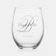 Black and Gray Fancy Script Monogrammed Stemless Wine Glass