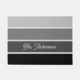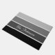 This trendy doormat features four stripes in varying ombre gradients of black, charcoal, and gray, and your name or monogram in script typography for a modern look.