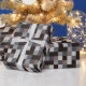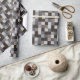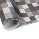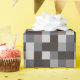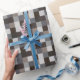This wrapping paper features squares in different shades of black and gray in a pixelated pattern.