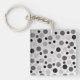 Pictured on a gray gradient are black and gray polka dots in different colored grays