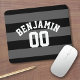 Black and Gray Silver Rugby Stripes Name Number Mouse Pad