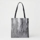 This tote bag presents tree reflections which create a shimmering abstract pattern on the pond in tones of black, white, silver and gray.