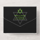 Black and green Star of David Bar Mitzvah invitation and RSVP card all in one invitation. The Star of David symbols can be removed in the design tool as well if you don't want them or want only some of them. The colors on this invitation are black, green, and grey. Classic colors that are masculine, elegant, and stylish. All the colors on this invitation can be changed too in the design tool.