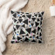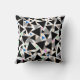 Black and grey geometric triangle Throw Pillow, with small colored triangles and thin pink stripes.