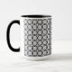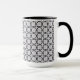 This mug features a clean and crisp abstract graphic tiled pattern in shades of black and grey.