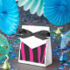 A modern fun black and pink zebra pattern accents these favor boxes.