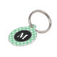 This pet tag has a black circle on the middle with a personalizable monogram letter. The background color is mint green with white small dog paws pattern. On the other side there are personalizable text areas for the name of your pet and for your phone number.