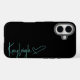 This personalized phone case features a solid black background with a place for a name or custom message, in mint green with a hand lettered heart accent. Font styles, colors and more can easily be changed by clicking "edit design" or “customize further”. Many other options are available in my store with new items arriving daily. Be sure to follow me for new product updates. Thank you for your interest in SapphireDesigns!