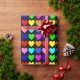 Bright heart pattern in a rainbow of colors. The bright colors show up well on black, but you can change the background color. Create your own Valentine's Day wrapping paper.