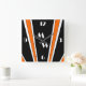 Black And Orange Art Deco Design Monogrammed Square Wall Clock